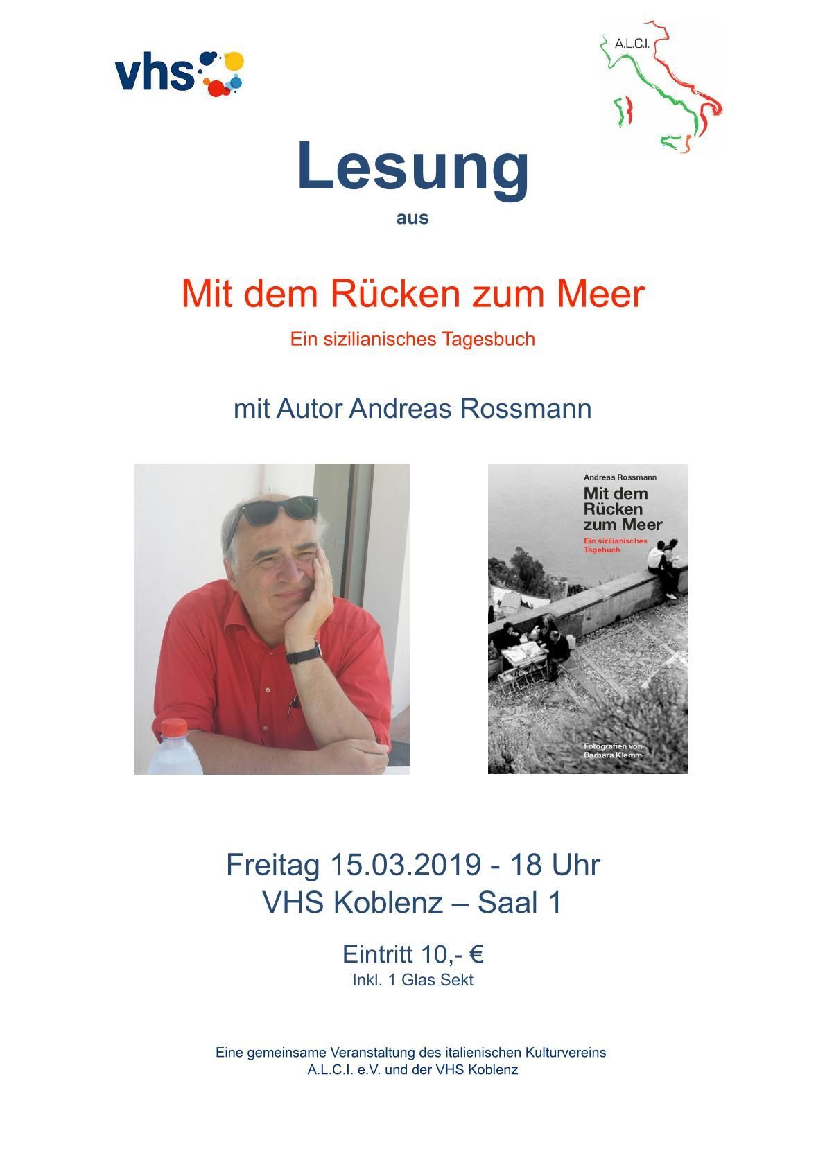 15/03/2019 Lesung von Andreas Rossmann, "Mit dem Rücken zum Meer"