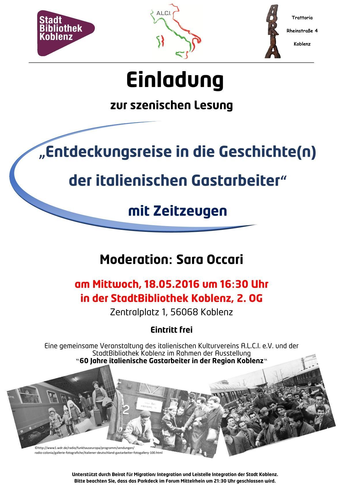 18/5/2016 Szenische Lesung " Entdeckungsreise in die Geschichte(n) der Italienischen Gastarbeiter"