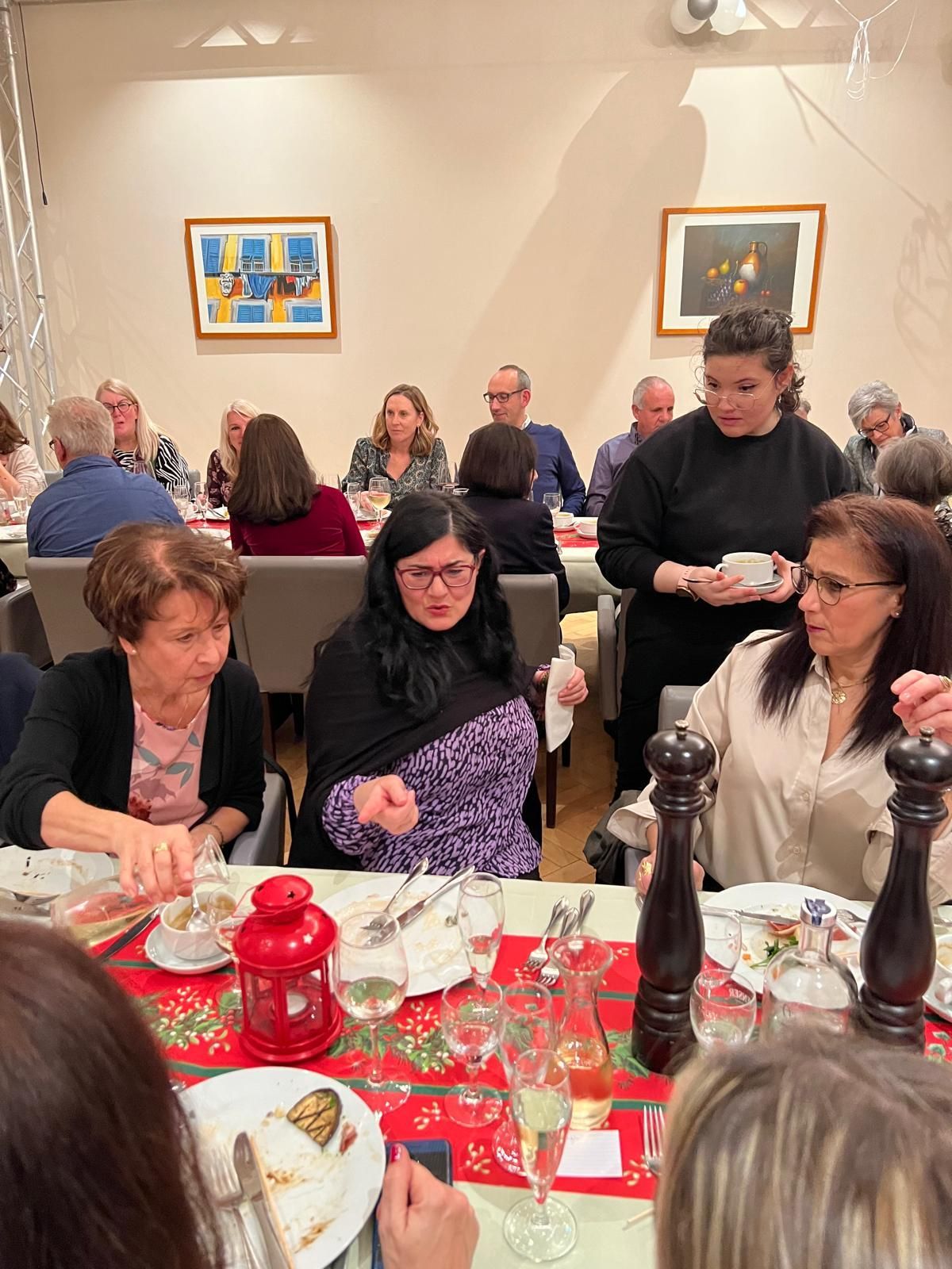 Am 13.12.2025 haben 50 Personen im DRK-Haus der Begegnung an der Liebfrauenkirche in Koblenz Weihnachten gefeiert. Es war ein äußerst gelungenes Fest. Jeder Teilnehmer brachte eine leckere italienische Spezialität mit, eine Vorspeise, eine Hauptspeise oder einen Nachtisch. Nach dem leckeren Essen und mehrfachem Anstoßen haben wir uns beim traditionellen Wichteln köstlich amüsiert.