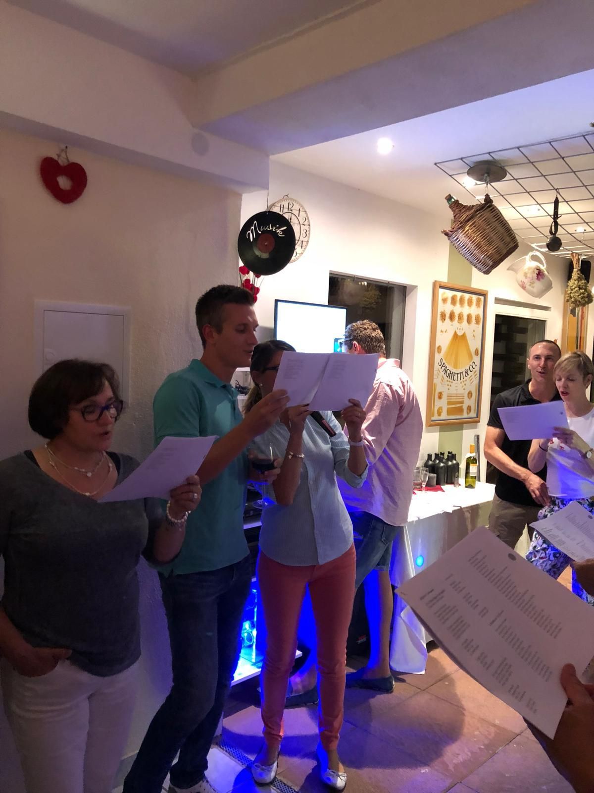 Es war uns eine große Freude, gemeinsam das zehnjährige Jubiläum unseres Vereins zu feiern. Der Abend war geprägt von unvergesslichen Momenten: das gemeinsame Singen italienischer Lieder, die gesellige Atmosphäre und natürlich die Torte, die diesen besonderen Anlass gebührend gekrönt hat. Ein herzlicher Dank an alle Teilnehmer, die dazu beigetragen haben, diese Feier so besonders zu machen. Wir freuen uns darauf, noch viele weitere Aktivitäten rund um die italienische Sprache und Kultur mit Euch zu teilen.
